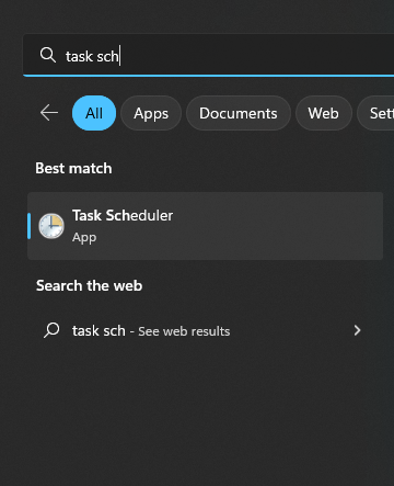 1. Log in to an Administrator account on a computer with access to the desired collection server. Then, from the Windows S****tart menu, open the Task Scheduler application.