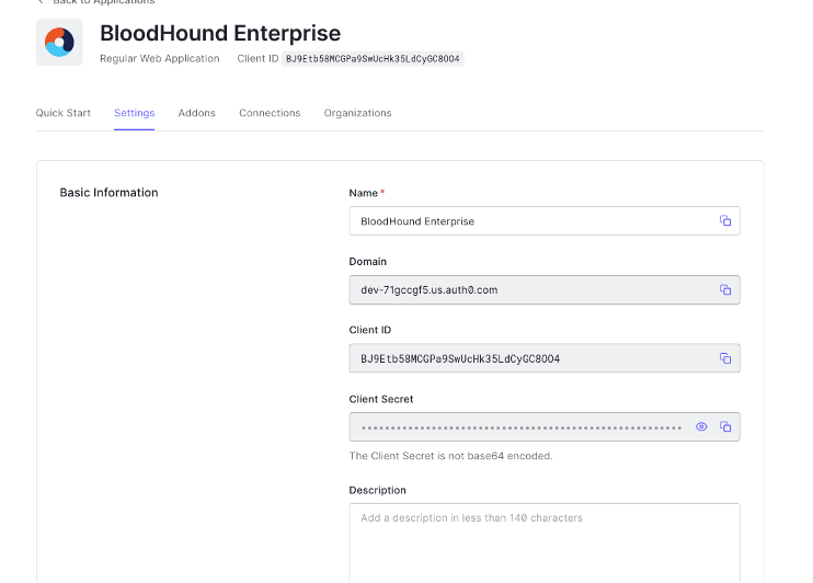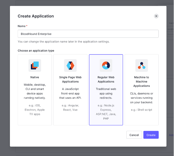 1. Create an authentication application for BloodHound Enterprise in Auth0.