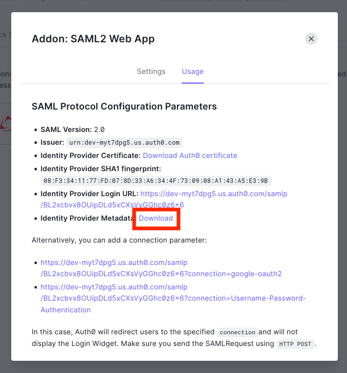 1. Enable the “SAML2 Webapp” toggle and download the Identify Provider Metadata file.