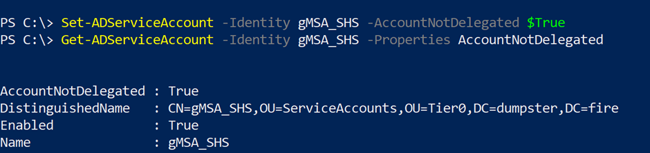 Using a gMSA will reduce the risk of having the SharpHound service account compromised by password spray (guessing) and password hash cracking and prevent the attacker from obtaining the password from elsewhere. Furthermore, using a gMSA makes it possible to have the SharpHound service account in the Protected Users group, which is covered in the following recommendation.