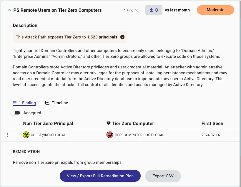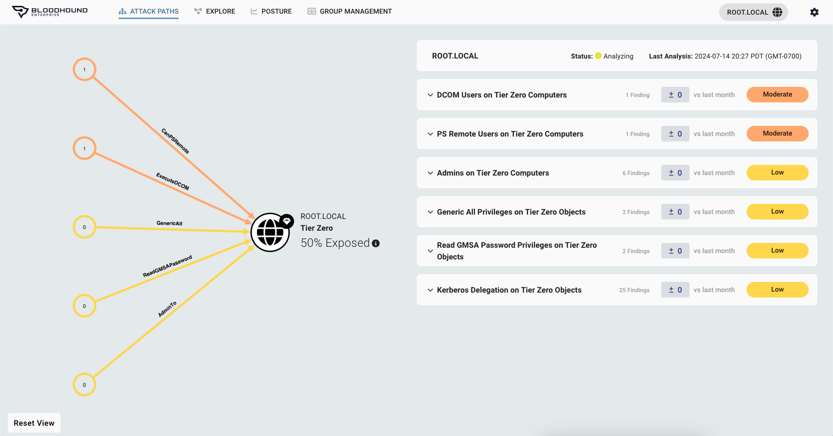 • [BHE Only] Attack Paths view visual overhaul - The Attack Paths page has undergone a pretty significant overhaul. These changes include a better use of screen real-estate, and bring several key metrics to the forefront of the page, making it easier to rapidly identify current posture and recent changes.
